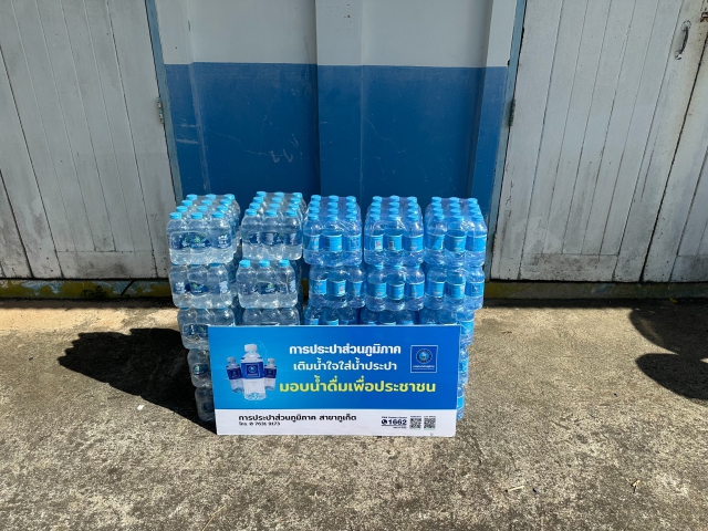 วันศุกร์ที่ 19 ธันวาคม 2568 การประปาส่วนภูมิภาคสาขาภูเก็ต ภายใต้การบริหารของ นายสุกฤษฏิ์ กลิ่นสนธิ์ ผู้จัดการการประปาส่วนภูมิภาคสาขาภูเก็ต มอบหมายให้นางอารีรัตน์ สัมพันธรัตน์ หัวหน้างานอำนวยการและพนักงานในสังกัด ร่วมสนับสนุนน้ำดื่มบรรจุขวดตราสัญลักษณ์ กปภ.จำนวน 150 ขวด และน้ำดื่มบรรจุขวด รวม 300 ขวด ให้กับสำนักงานพัฒนาชุมชนจังหวัดภูเก็ต ในการจัดกิจรรมพัฒนาชุมชนดีเด่น เพื่อแสดงความสำเร็จของงานพัฒนาชุมชนต่อสาธารณชน ในระหว่างวันที่ 29 ธีนวาคม 2568 - วันที่ 6 มกราคม 2569 ณ บริเวณเวทีกลางสะพานหิน อำเภอเมืองภูเก็ต จังหวัดภูเก็ต
