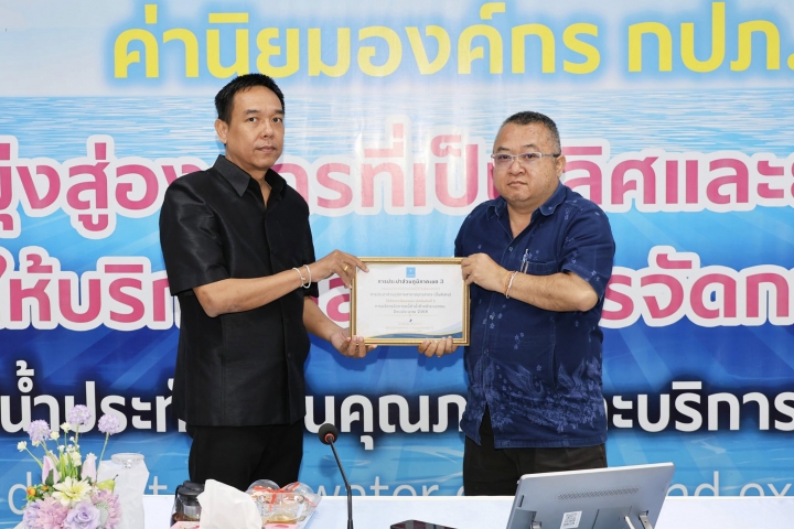 วันที่ 25 ธันวาคม 2568 กองบัญชีและการเงิน การประปาส่วนภูมิภาคเขต 3 รายงานผลการปฏิบัติงานด้านบัญชีและการเงิน ของ กปภ.สาขาในสังกัด ประจำปีงบประมาณ 2568 พร้อมจัดพิธีมอบใบประกาศนียบัตรให้แก่สาขาที่มีผลงานดีเยี่ยมในด้านต่างๆ โดยมี นายสาณ เรืองขจร ผู้อำนวยการการประปาส่วนภูมิภาคเขต 3 เป็นประธานในพิธี ณ ห้องประชุม 1 กปภ.ข.3 ต.ท่าผา อ.บ้านโป่ง จ.ราชบุรี