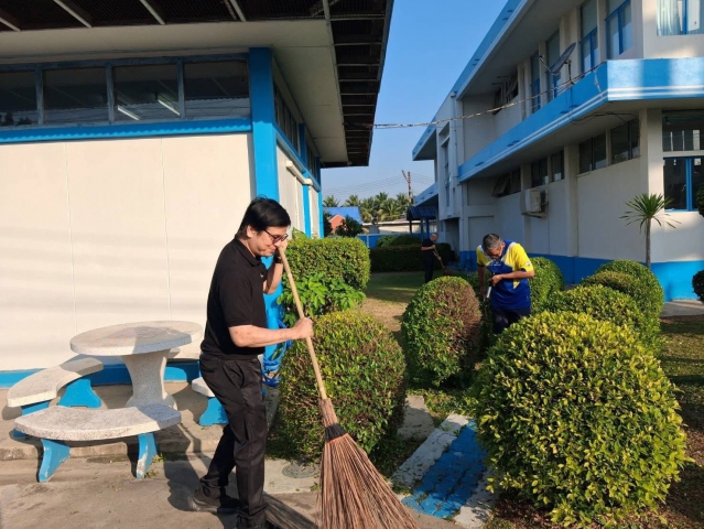 พร้อมด้วยหัวหน้างาน พนักงานและลูกจ้างในสังกัด ร่วมแรงร่วมใจกันทำความสะอาดพื้นที่โดยรอบสำนักงาน