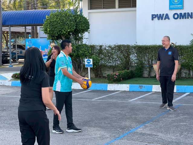 วันพุธ ที่ 14 มกราคม 2569 กปภ.สาขาอ้อมน้อย นำโดยนายสุธี แสงเจือ ผจก.กปภ.สาขาอ้อมน้อย พร้อมด้วย นายนพพล วัฒนสืบสินผช.ผจก.กปภ., หัวหน้างานและพนักงานในสังกัด ร่วมจัดกิจกรรม Sport Day โดยการเล่นกีฬาวอลเลย์บอล เพื่อส่งเสริมให้พนักงานมีสุขภาพแข็งแรงป้องกันโรค เพิ่มประสิทธิภาพการทำงาน สร้างความสัมพันธ์อันดีระหว่างผู้บริหารและพนักงาน ตามนโยบายสถานประกอบการปลอดโรค ปลอดภัย กายใจเป็นสุข ณ การประปาส่วนภูมิภาคสาขาอ้อมน้อย