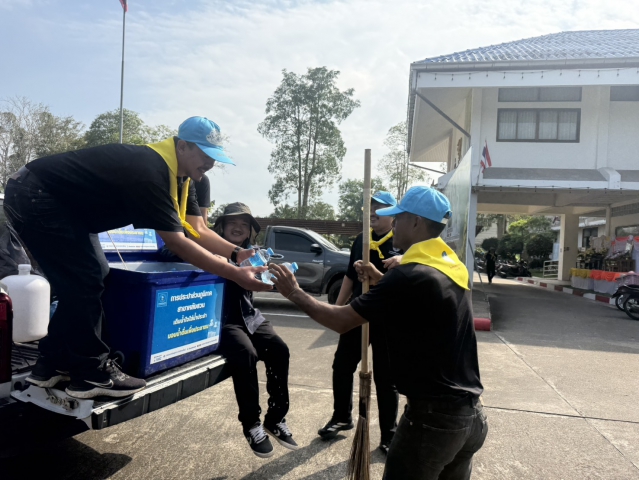 วันพฤหัสบดี ที่ 15 มกราคม 2569 เวลา 09.00 น. ภายใต้การบริหารของ นายอนุเทพ แดงบุญ ผจก.กปภ.สาขาหลังสวน มอบหมายให้พนักงานในสังกัด เข้าร่วมกิจกรรมจิตอาสาพัฒนาในโอกาสวันสำคัญของชาติไทย และบริการแจกน้ำดื่มแช่เย็น ตราสัญลักษณ์ กปภ. จำนวน 300 ขวด โดยร่วมกันปรับปรุงพัฒนาสถานที่ ปรับปรุงภูมิทัศน์ ณ ที่ว่าการอำเภอหลังสวน ตำบลขันเงิน อำเภอหลังสวน จังหวัดชุมพร