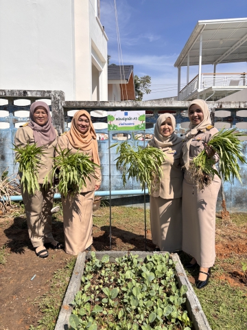 ผักที่ปลูกได้ถูกนำมาจำหน่ายให้แก่ประชาชนและลูกค้าที่มาใช้บริการ ณ สำนักงานการประปาส่วนภูมิภาคสาขาสายบุรี โดย รายได้ทั้งหมดจากการจำหน่าย (ไม่หักค่าใช้จ่าย) จะนำไปมอบเป็น ทุนการศึกษาให้แก่เด็กกำพร้าในพื้นที่จังหวัดปัตตานี