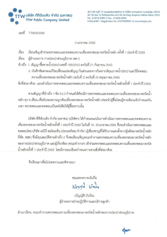 การประปาส่วนภูมิภาคเขต 3 การประปาส่วนภูมิภาคสาขาอ้อมน้อย โดยนายสุธี แสงเจือ ผจก.กปภ.สาขาอ้อมน้อย มอบหมายให้นายพัชรวัฒน์ ธนบูลย์วรโชติ หัวหน้างานผลิต ร่วมกับการประปาส่วนภูมิภาคในพื้นที่จังหวัดนครปฐมและจังหวัดสมุทรสาคร และบริษัท ทีทีดับบลิว จำกัด (มหาชน) ลงพื้นที่ตรวจสอบมาตรวัดน้ำหลัก ครั้งที่ 1 ประจำปี 2569 ณ สถานีจ่ายน้ำมหาชัย (SS3) สถานีจ่ายน้ำกระทุ่มแบน สถานีจ่ายน้ำคลองโยง และสถานีจ่ายน้ำพุทธมณฑล เพื่อดำเนินการตรวจสอบและทดสอบความเที่ยงตรงของมาตรวัดน้ำหลักตามสัญญาการซื้อขายน้ำประปา ทุก 6 เดือน เพื่อรับรองความถูกต้องเที่ยงตรงของมาตรวัดหลัก จากการตรวจสอบและทดสอบพบว่า ความเที่ยงตรงของมาตรน้ำหลักอยู่ในเกณฑ์ปกติ ไม่มีการคลาดเคลื่อนตามที่กำหนด ซึ่งเป็นการรับรองความถูกต้องของระบบการวัดปริมาณน้ำ และสร้างความเชื่อมั่นในการบริหารจัดการน้ำประปาอย่างมีประสิทธิภาพต่อไป