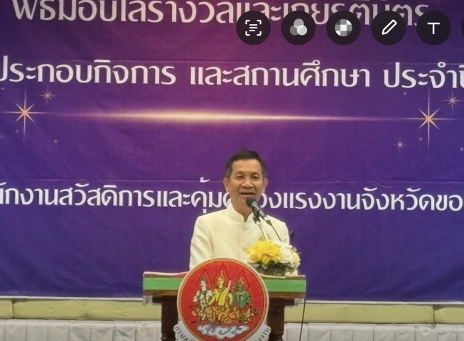 การประปาส่วนภูมิภาคสาขาขอนแก่น (ชั้นพิเศษ) นำโดยนายธีรศักดิ์ กิตติศิริวัฒนกุล ผู้จัดการ กปภ.สาขาขอนแก่น (พ) มอบหมายนางสาวนฤมล ประภาสมุทร ผู้ช่วยผู้จัดการ กปภ.สาขาขอนแก่น (พ) พร้อมนางอลิสรา เที่ยงตรง หัวหน้างาน 8 งานลูกค้าสัมพันธ์ เเละพนักงานในสังกัด เข้าร่วมพิธีรับมอบใบรับรองมาตรฐานการป้องกันและแก้ไขปัญหายาเสพติดในสถานประกอบกิจการ (มยส.) ประจำปี 2568 โดยจัดขึ้นเพื่อมอบใบรับรองให้สถานประกอบกิจการที่มีการดำเนินงานด้านการป้องกันและแก้ไขปัญหายาเสพติดในสถานประกอบกิจการ ซึ่งเป็นการจัดกิจกรรมโครงการโดยสำนักงานสวัสดิการเเละคุ้มครองเเรงงานจังหวัดขอนแก่น