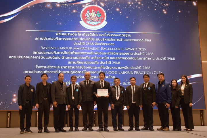 นายพลวัฒน์ บุญสุทธิ ผู้จัดการ กปภ.สาขาระยอง เป็นผู้แทนเข้ารับมอบใบประกาศเกียรติคุณในโครงการโรงงานสีขาว (ระดับที่ 1) ประจำปี 2568 จากสำนักงานสวัสดิการและคุ้มครองแรงงานจังหวัดระยอง เมื่อวันที่ 6 กุมภาพันธ์ 2569 ณ ห้องประชุมสุวรรณมาลี โรงแรมโนโวเทล ระยอง สตาร์ คอนเวนชั่น เซ็นเตอร์ โดยได้รับเกียรติจากนายกำธร เวหน รองผู้ว่าราชการจังหวัดระยอง เป็นประธานในพิธี