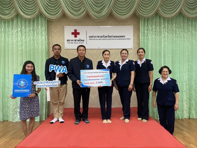 โดยในครั้งนี้ กปภ.สาขากำแพงเพชร ได้ร่วมบริจาคเพื่อสนับสนุนภารกิจของเหล่ากาชาดจังหวัดฯ และชมรมแม่บ้านมหาดไทย ดังนี้: