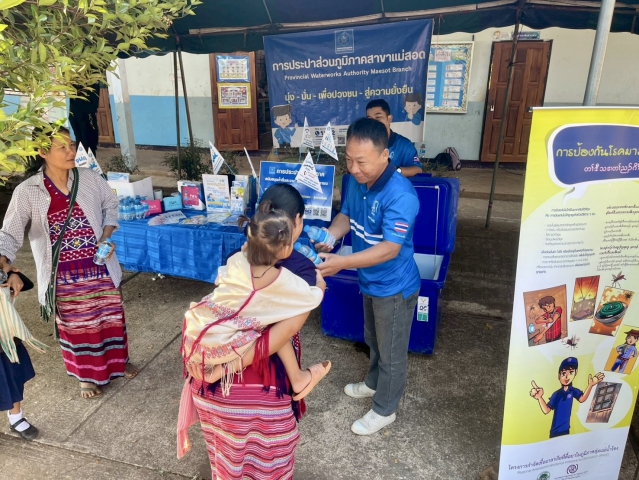 โอกาสนี้ กปภ.สาขาแม่สอด ร่วมให้ความรู้เกี่ยวกับน้ำประปา และสนับสนุนน้ำดื่มบรรจุขวดตราสัญลักษณ์ กปภ. จำนวน 480 ขวด ให้แก่ประชาชน โครงการฯดังกล่าวถือเป็นส่วนหนึ่งของกิจกรรมด้านความรับผิดชอบต่อสังคม (CSR) ของการประปาส่วนภูมิภาค