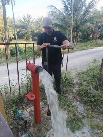ลงพื้นที่ดำเนินการเปิดล้างตะกอนระบายในเส้นท่อจ่ายน้ำ (Blow off) ผ่านหัวดับเพลิง บริเวณบ้านท่าสำเภา ม.9 ต.ขนอม ต.ขนอม จ.นครศรีธรรมราช