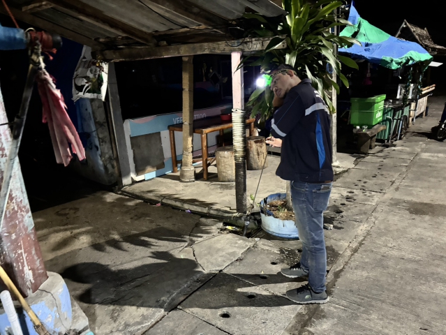 ลงพื้นที่ปฏิบัติงานลดน้ำสูญเสียโดยวิธีเดินสำรวจหาน้ำสูญเสีย