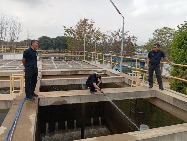 วันที่ 18 กุมภาพันธ์ 2569 นายอธิวิศน์ เกิดภาณุพัฒน์ ผู้จัดการการประปาส่วนภูมิภาคสาขากาญจนบุรี พร้อมด้วยนายณรงค์ศักดิ์ แก้วเขียว ผู้ช่วยผู้จัดการ, นายโยธิน พลเรือง หัวหน้างานผลิต และเจ้าหน้าที่งานผลิต กปภ.สาขากาญจนบุรี ได้ร่วมทำกิจกรรมล้างถังตกตะกอน โรงกรองน้ำขนาด 600 ลบ.ม./ชม. สถานีผลิตน้ำแม่ข่ายกาญจนบุรี, เพื่อเป็นการดูแล, บำรุงรักษาระบบผลิตน้ำ, รักษาความสะอาดพื้นที่ทำงาน อันก่อให้เกิดประสิทธิภาพในการทำงาน, สร้างนิสัย และสุขภาพที่ดีของผู้ปฏิบัติงาน