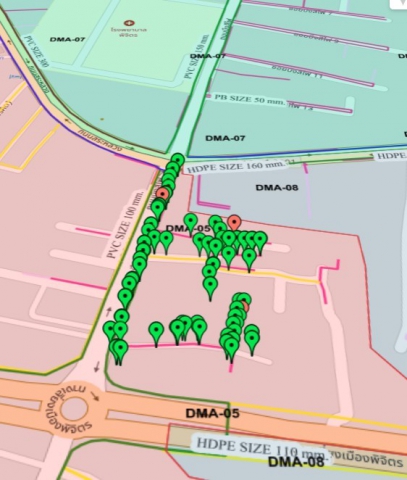 ในการดำเนินกิจกรรมในครั้งนี้ ตามผลการตรวจสอบ Step Test พื้นที่ ข้างวีอาร์ พลาซ่า (DMA-05) น้ำสูญเสียสูงใน Step 04 พบจุดท่อประปาแตกรั่วจำนวน 3 จุด