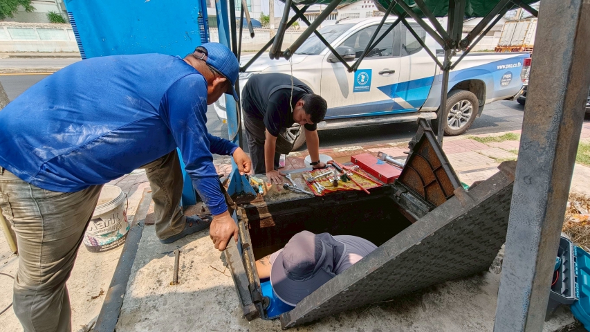 การประปาส่วนภูมิภาคสาขาอ้อมน้อย โดยนายสุธี แสงเจือ ผจก.กปภ.สาขาอ้อมน้อย มอบหมายให้นายนพพล วัฒนสืบสิน ผช.ผจก. หัวหน้างานบริการฯ 1, 2 และพนักงานในสังกัด ดำเนินการถอดล้างหัว PRV (Pressure Reducing Valve) ขนาด 300 มม. DMA12 บริเวณโรงงานผ้าขนหนู ตามแผนงานบำรุงรักษาป้องกันเชิงรุก ซึ่งหัว PRV เปรียบเสมือนวาล์วควบคุมแรงดันน้ำ ทำหน้าที่ลดแรงดันน้ำให้อยู่ในระดับที่เหมาะสม เพิ่มประสิทธิภาพการจ่ายน้ำได้อย่างสม่ำเสมอ ป้องกันไม่ให้ท่อประปาแตกเสียหาย และช่วยลดโอกาสเกิดน้ำสูญเสียได้มากยิ่งขึ้น