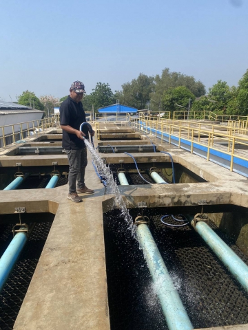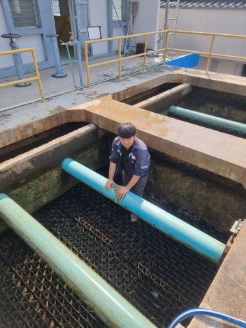 วันที่ 24 มีนาคม 2569 นายอธิวิศน์ เกิดภาณุพัฒน์ ผู้จัดการการประปาส่วนภูมิภาคสาขากาญจนบุรี พร้อมด้วยนายณรงค์ศักดิ์ แก้วเขียว ผู้ช่วยผู้จัดการ, นายโยธิน พลเรือง หัวหน้างานผลิต และเจ้าหน้าที่งานผลิต กปภ.สาขากาญจนบุรี ได้ร่วมทำกิจกรรมล้างถังตกตะกอน โรงกรองน้ำขนาด 400 ลบ.ม./ชม. สถานีผลิตน้ำแม่ข่ายกาญจนบุรี, เพื่อเป็นการดูแล, บำรุงรักษาระบบผลิตน้ำ, รักษาความสะอาดพื้นที่ทำงาน อันก่อให้เกิดประสิทธิภาพในการทำงาน, สร้างนิสัย และสุขภาพที่ดีของผู้ปฏิบัติงาน