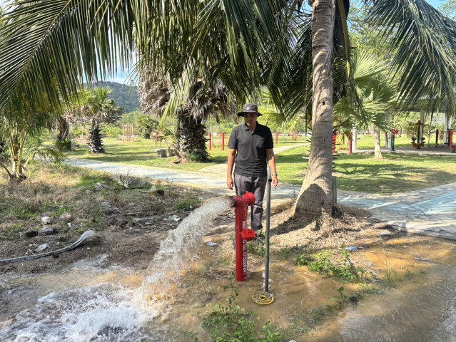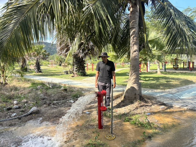 ลงพื้นที่ดำเนินการเปิดล้างตะกอนระบายในเส้นท่อจ่ายน้ำ (Blow off) ผ่านหัวดับเพลิง