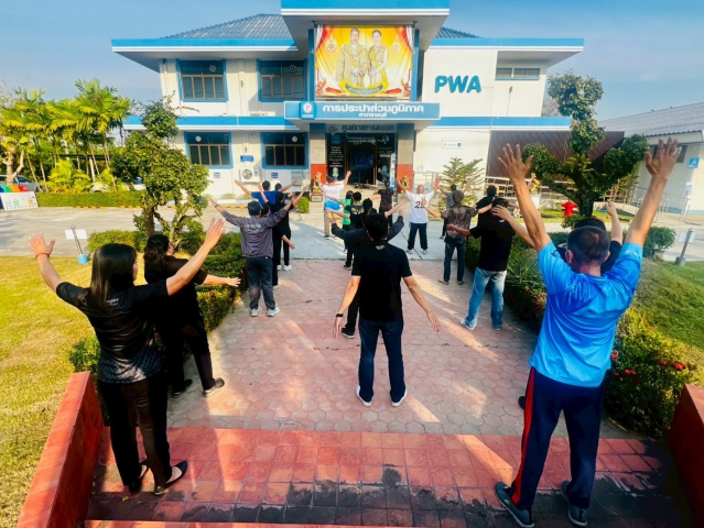 วันพุธที่ 28 มกราคม 2569 เวลา16.30 น. นายสุรวุฒิ ชอบอิสระ ผจก.กปภ.สาขาราชบุรี พร้อมด้วยนางสาวอุบลวรรณา เนียมจันทร์ ผช.ผจก. ,หัวหน้างาน ,พนักงานและลูกจ้างในสังกัด ขานรับนโยบาย กปภ. สถานประกอบการ ปลอดโรค ปลอดภัย กายใจเป็นสุข "การออกกำลังกาย ทุกวันพุธ" (Sports Day) เพื่อส่งเสริมให้พนักงานมีสุขภาพกายสุขภาพจิตที่สมบูรณ์แข็งแรง ป้องกันโรคไม่ติดต่อเรื้อรัง (NCDs) และช่วยเพิ่มประสิทธิภาพในการทำงานให้ดียิ่งขึ้น รวมถึงเป็นการสร้างความสัมพันธ์อันดีระหว่างผู้บริหารและพนักงานในสังกัด