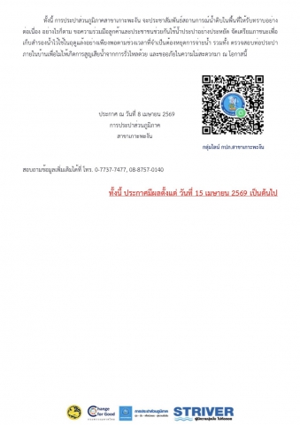 การประปาส่วนภูมิภาคสาขาเกาะพะงัน เนื่องจากสถานการณ์ภัยแล้ง และสภาพอากาศร้อนจัด ส่งผลให้ปริมาณน้ำดิบ ณ สถานีผลิตน้ำ RO บ้านใต้และสถานีผลิตน้ำเขาชักธง มีปริมาณจำกัดและลดลงอย่างต่อเนื่อง เพื่อให้สามารถส่งจ่ายน้ำประปาให้พี่น้องประชาชนได้ใช้อย่างต่อเนื่องตลอดช่วงฤดูแล้ง จนกว่าสถานการณ์น้ำดิบจะกลับเข้าสู่ภาวะปกติหรือมีการประกาศเปลี่ยนแปลง