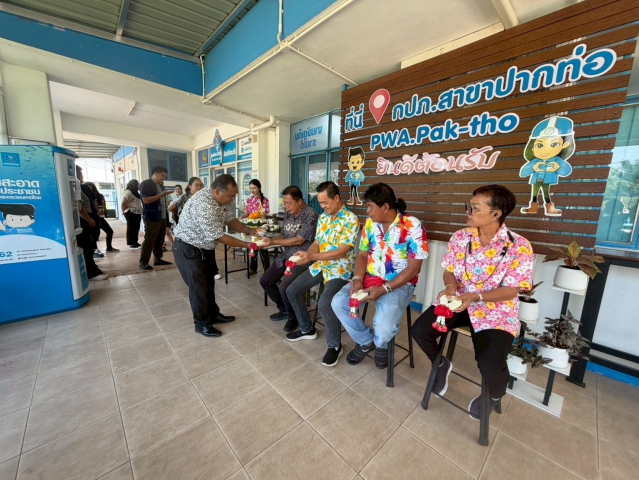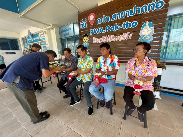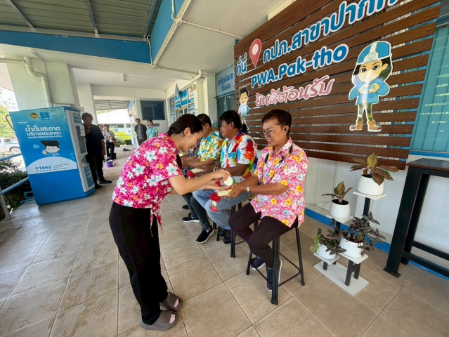 วันพุธ 8 เมษายน 2569 การประปาส่วนภูมิภาคสาขาปากท่อ นำโดย นายปกรณ์ บัวทอง ผู้จัดการการประปาส่วนภูมิภาคสาขาปากท่อ พร้อมด้วย หัวหน้างาน และพนักงานในสังกัด จัดกิจกรรมสรงน้ำพระ พร้อมรดน้ำดำหัวผู้ใหญ่ สืบสานประเพณีวันสงกรานต์ เพื่อความเป็นสิริมงคลในวันขึ้นปีใหม่ไทยและสร้างความสัมพันธ์อันดีระหว่างบุคลากรในหน่วยงาน ทั้งนี้ ได้เชิญชวนลูกค้า ร่วมสรงน้ำพระ และพระแม่ธรณี ตามวัฒนธรรมประเพณีของเทศกาลสงกรานต์ ปีใหม่ไทย