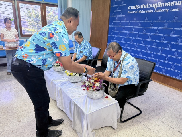 วันอังคารที่ 7 เมษายน 2569 การประปาส่วนภูมิภาค สาขาแหลมฉบัง นำโดย นายอนันต์ เรศจะโปะ ผู้จัดการการประปาส่วนภูมิภาค สาขาแหลมฉบัง พร้อมด้วย นายธีระศักดิ์ มอญสวัสดิ์ ผู้ช่วยผู้จัดการการประปาส่วนภูมิภาค สาขาแหลมฉบัง หัวหน้างาน,พนักงานและลูกจ้างในสังกัด ร่วมกันจัดกิจกรรมสรงน้ำพระ, พระแม่ธรณี และพิธีรดน้ำดำหัวขอพรผู้อาวุโสและผู้บริหาร เนื่องในเทศกาลสงกรานต์ ประจำปี 2569 ณ สำนักงาน กปภ.สาขาแหลมฉบัง กิจกรรมดังกล่าวจัดขึ้นเพื่อแสดงความเคารพนอบน้อมและสืบสานประเพณีไทยอันดีงาม โดยพนักงานทุกคนได้ร่วมกันรับพรและโอวาทจากผู้บริหาร เพื่อนำไปเป็นแนวทางในการดำเนินชีวิตและหน้าที่การงานต่อไปอย่างมีสิริมงคล และยังจัดไว้สำหรับลูกค้า ประชาชน ผู้มาติดต่อได้ร่วมสรงน้ำพระอีกด้วย