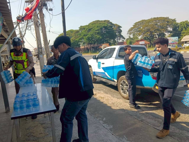 เมื่อวันพฤหัสบดีที่ 9 เมษายน 2568 เวลา 09.30 น. กปภ.สาขาสวรรคโลก นำโดยนางสาวชลนิชา ทองขลิบ ผู้จัดการ มอบหมายให้พนักงานในสังกัด สนับสนุนน้ำดื่มบรรจุขวดตราสัญลักษณ์ กปภ. จำนวน 500 ขวด เพื่อใช้ในจุดบริการประชาชนช่วงเทศกาลสงกรานต์ 2569 ระหว่างวันที่ 10-16 เมษายน 2569 ณ บริเวณศูนย์จราจร สถานีตำรวจภูธรสวรรคโลก อ.สวรรคโลก จ.สุโขทัย