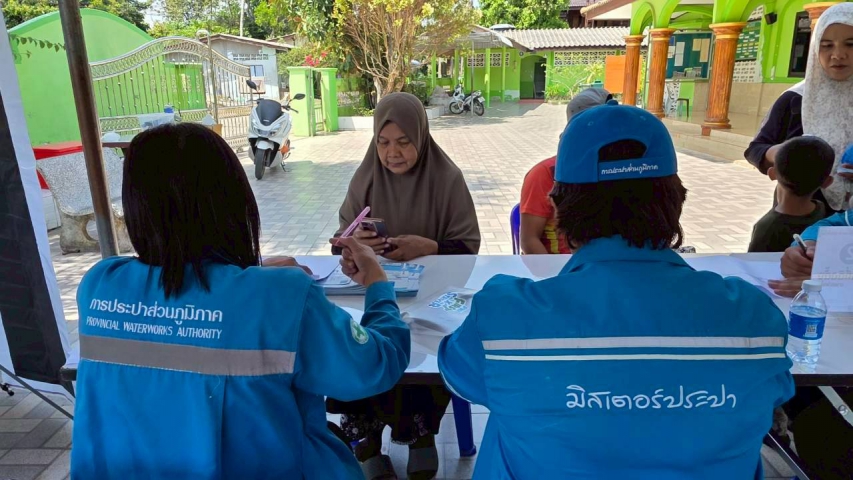 เมื่อวันศุกร์ที่ 10 เมษายน 2569 เวลา 09.30 – 11.30 น. นายคมสิทธิ์ บริบูรณ์ ผู้จัดการการประปาส่วนภูมิภาคสาขาสุไหงโก-ลก มอบหมายให้ นางนิตยา เทพบัวแก้ว หัวหน้างานอำนวยการ พร้อมด้วยทีมงานในสังกัด ลงพื้นที่พบปะประชาชน ณ บ้านท่าแพรก หมู่ที่ 6 ตำบลเจ๊ะเห อำเภอตากใบ จังหวัดนราธิวาส เพื่อให้บริการรับคำร้องขอติดตั้งประปาใหม่แบบเบ็ดเสร็จในจุดเดียว