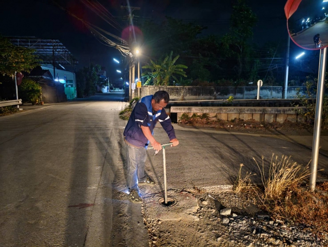 วันที่ 16 เมษายน 2569 เวลา 23.00 น. ถึง วันที่ 17 เมษายน 2569 เวลา 02.00 น. การประปาส่วนภูมิภาคสาขาอ้อมน้อย โดยนายสุธี แสงเจือ ผจก.กปภ.สาขาอ้อมน้อย พร้อมด้วยนายนพพล วัฒนสืบสิน ผช.ผจก. หัวหน้างานบริการฯ 1, 2 และพนักงานในสังกัด ร่วมกับผู้รับจ้างค้นหาท่อแตกรั่ว (ALC) ลงพื้นที่ทำ Step Test and Zero Test ค้นหาจุดแตกรั่วในพื้นที่ DMA06 บริเวณบริษัท ไดนามิค กรุ๊ป,DMA10 บริเวณโรงเหล็ก, DMA12 บริเวณโรงงานผ้าขนหนู, DMA27 บริเวณปากซอยเศรษฐกิจ 1 ซอย 3 พื้นที่ตำบลอ้อมน้อย ตำบลกระทุ่มล้ม ตำบลสวนหลวง และตำบลท่าไม้ เพื่อค้นหาปริมาณน้ำสูญเสียที่เกิดขึ้นให้เป็นไปตามเป้าหมายต่อไป