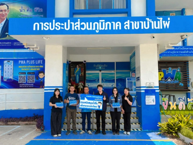 ในวันอังคารที่ 21 เมษายน 2569 การประปาส่วนภูมิภาคสาขาบ้านไผ่ นำโดย นายพฤหัส คำเรือน ผู้จัดการการประปาส่วนภูมิภาคสาขาบ้านไผ่ พร้อมด้วย หัวหน้างานอำนวยการ และพนักงานในสังกัด สนับสนุนน้ำดื่มบรรจุขวดตราสัญลักษณ์ กปภ. จำนวน 300 ขวด ให้แก่ ที่ว่าการอำเภอบ้านแฮด จ.ขอนแก่น เพื่อสนับสนุนโครงการหน่วยบำบัดทุกข์ บำรุงสุข สร้างรอยยิ้มให้กับประชาชน ร่วมกับการปฏิบัติหน่วยแพทย์เคลื่อนที่ พอ.สว. ณ โรงเรียนประชาพัฒนาบ้านแฮด ต.บ้านแฮด จ.ขอนแก่น