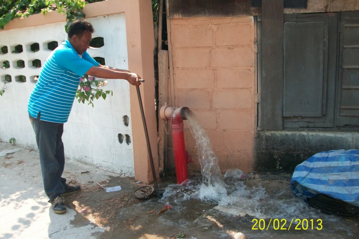 การประปาส่วนภูมิภาคสาขาบ้านฉาง นำโดย นายดนัย เอกวิริยกิจ หนง.อำนวยการ นายสยาม ปานศิริ หนง.งานบริการฯ นายธีรทัศน์ กลองชิต หนง.ผลิต พนักงานและลูกจ้างในสังกัด ออกหน่วยบริการเคลื่อนที่ตามโครงการเติมใจให้กัน ( HOME CARE ) ณ บริเวณชุมชนซอยประปา ต.เนินพระ อ.เมือง จ.ระยอง เมื่อวันที่ ๒๐ กุมภาพันธ์ ๒๕๕๖ เวลา ๐๘.๓๐ - ๑๒.๐๐ น. โดยจัดทีมช่างออกบริการตรวจสอบ/ซ่อมแซม ท่อแตก , ท่อรั่ว ,อุปกรณ์ประปา ,ระบบประปาภายในบ้าน โดยไม่คิดค่าใช้จ่ายใดๆ และเป็นการพบปะประชาชนเพื่อสำรวจความพึงพอใจในการให้บริการ สร้างความสัมพันธ์อันดีกับลูกค้า ซึ่งให้บริการประชาชนเป็นจำนวน ๓๙ ราย