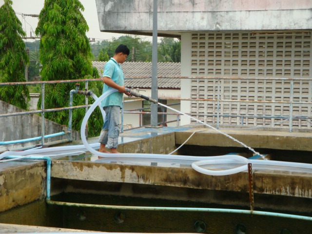 การประปาส่วนภูมิภาคสาขาสระแก้ว โดยนายวิชัย จันทะมาตร หัวหน้างานผลิต นำทีมพนักงาน และลูกจ้าง ดำเนินการล้างถังตกตะกอน ขนาด ๔๐๐ ลบ.ม./ชม. โรงกรองน้ำสระแก้ว กปภ.สาขาสระแก้ว เมื่อวันที่ ๑๙-๒๐ พฤษภาคม ๒๕๕๖ เพื่อรักษาคุณภาพน้ำประปา เสริมสร้างภาพลักษณ์ และความมั่นใจให้กับลูกค้าผู้ใช้น้ำ ในเขตอำเภอเมืองสระแก้ว รวมถึงอำเภอเขาฉกรรจ์ซึ่งรับน้ำจากโรงกรองสระแก้วด้วย