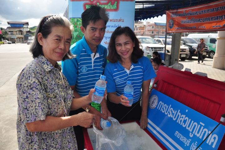เมื่อวันที่ ๓ กันยายน ๒๕๕๖ การประปาส่วนภูมิภาคสาขาชลบุรี (ชั้นพิเศษ) โดย นายสมยศ ศิลาอ่อน ผู้จัดการการประปาส่วนภูมิภาค (ชั้นพิเศษ) สาขาชลบุรี, นายเจษฎา ชูชาญ ผู้ช่วยผู้จัดการการประปาส่วนภูมิภาค (ชั้นพิเศษ) สาขาชลบุรี และนางสุปราณี ทองเหี่ยง หัวหน้างานลูกค้าสัมพันธ์ พร้อมด้วยพนักงาน และลูกจ้างในสังกัด ร่วมบริการน้ำดื่มบรรจุขวดจำนวน ๓๐๐ ขวด แด่ประชาชนที่เข้าร่วมกิจกรรม กระทรวงการพัฒนาสังคมและความมั่นคงของมนุษย์เคลื่อนที่ ณ ศาลาเฉลิมพระเกียรติ ตำบลบางทราย อำเภอเมืองชลบุรี จังหวัดชลบุรี โดยมีประชาชนผู้สูงอายุ คนพิการเข้าร่วมกิจกรรมและรับน้ำดื่มอย่างสดชื่น ท่ามกลางอากาศ และแสงแดดที่อบอ้าว