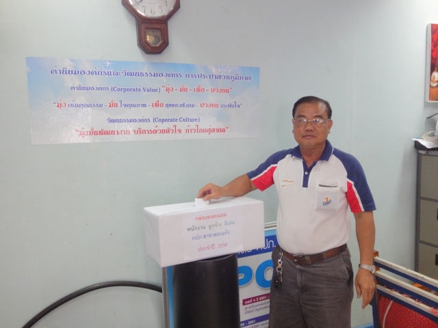 การประปาส่วนภูมิภาคาสาขาสระแก้ว จัดกิจกรรม Morning Talk ประจำเดือน กันยายน ๒๕๕๖ เมื่อวันที่ ๑๘ กันยายน ๒๕๕๖ ณ ห้องประชุม กปภ.สาขาสระแก้ว โดยนายชูชาติ กัทลี หัวหน้างาน พนักงาน และลูกจ้างในสังกัด เข้าร่วมกิจกรรมอย่างพร้อมเพรียง ผู้จัดการ กปภ.สาขาสระแก้ว ได้มอบเกียรติบัตรให้กับ นายอภิวัฒน์ มูลลาว ลูกจ้างชั่วคราวรายเดือน ปฏิบัติหน้าที่ผลิตน้ำ ได้รับรางวัลพนักงานดีเด่นประจำปี ๒๕๕๖ ซึ่งผ่านการคัดเลือกและลงคะแนนโดยพนักงาน และลูกจ้างในสังกัดทุกคน เมื่อวันที่ ๑๑ กันยายน ๒๕๕๖ และยังได้ถือโอกาสนี้ซักซ้อมทำความเข้าใจในเรื่องการรับเรื่องร้องเรียน การตอบข้อร้องเรียน หรือคำถามต่าง ๆ ที่มีเข้ามา โดยให้ใช้ความสุภาพและรับฟังข้อมูลให้ชัดเจน และส่งเรื่องให้ผู้ที่มีหน้าที่โดยตรงเป็นผู้ชี้แจง นอกจากนี้หัวหน้างาน และพนักงานที่มีประสบการณ์ในการแก้ปัญหาได้สำเร็จ ลุล่วง ได้ให้ความเห็นและแนะนำแนวทางในการปฏิบัติที่ได้รับผลสำเร็จแก่เพื่อน ๆ พนักงานเพื่อเป็นการแลกเปลี่ยนประสบการณ์