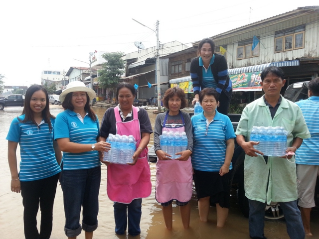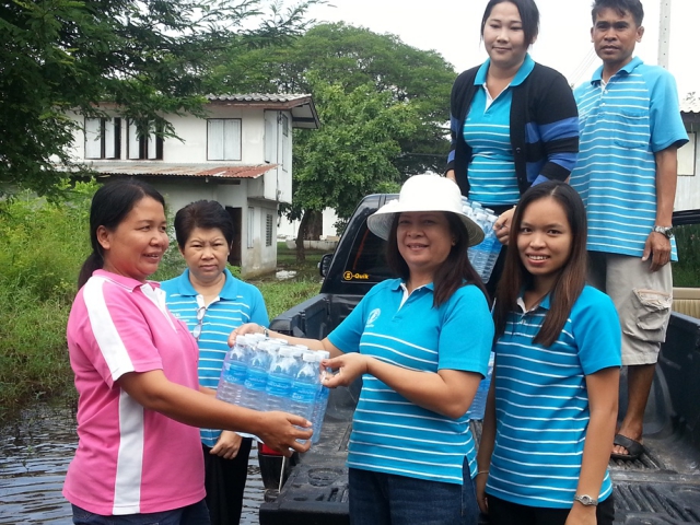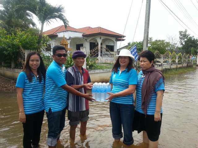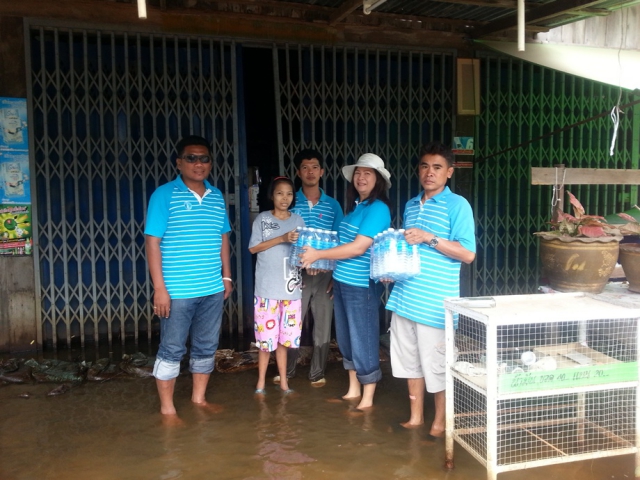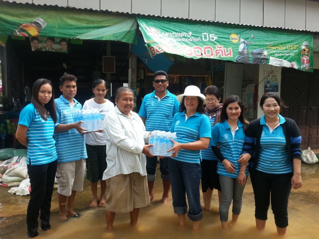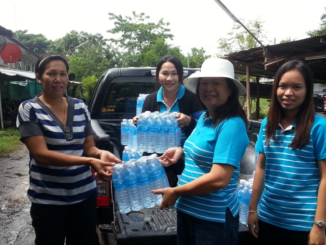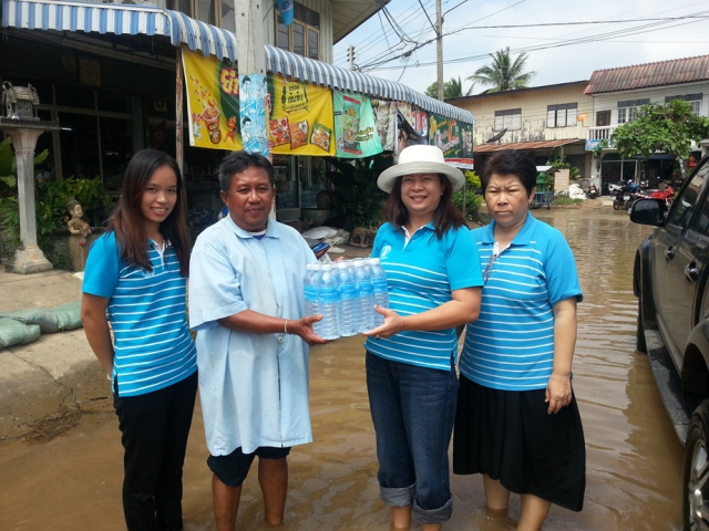 เมื่อวันที่ 21 ตุลาคม 2556 นางจรรยมณฑน์ ถวัลย์ภูวนาถ ผู้จัดการการประปาส่วนภูมิภาคสาขาชุมพวง พร้อมด้วยพนักงานในสังกัด ได้ลุยน้ำท่วมออกพบประชาชนเพื่อนำน้ำดื่มบรรจุขวด จำนวนทั้งสิ้น 500 ขวดออกไปแจกจ่ายให้ความช่วยเหลือแก่ผู้ใช้น้ำในเขตเทศบาลตำบลชุมพวงที่ได้รับความเดือดร้อนจากอุทกภัยในพื้นที่ตำบลชุมพวง อำเภอชุมพวง จังหวัดนครราชสีมา ซึ่งการลงพื้นที่ในครั้งนี้การประปาส่วนภูมิภาคสาขาชุมพวงต้องลุยน้ำท่วมเข้าไปตามบ้านเรือนของประชาชนเนื่องจากพื้นที่ดังกล่าวได้รับผลกระทบจากน้ำท่วมทำให้การสัญจรเป็นไปด้วยความไม่สะดวก