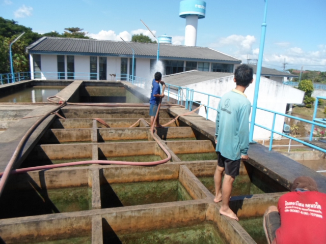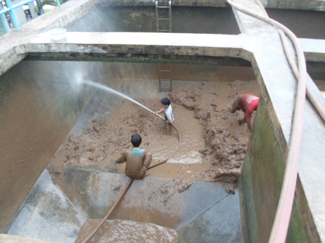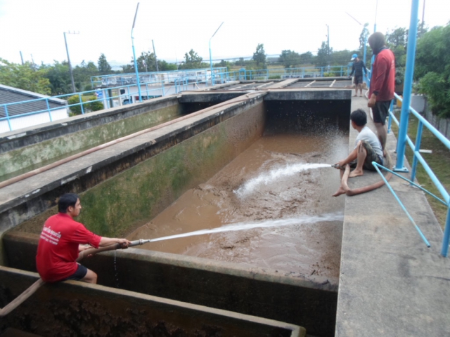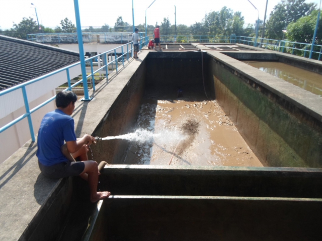 นายวิพล ติดเทียน หัวหน้างานงานผลิต กปภ.สาขาแม่สอด นำทีมพนักงานและเจ้าหน้าที่ล้างถังตกตะกอนหน่วยบริการแรงสูง การประปาส่วนภูมิภาคสาขาแม่สอด ตามแผนปฏิบัติงานประจำเดือน ธันวาคม เมื่อวันพุธที่ 4 ธันวาคม 2556