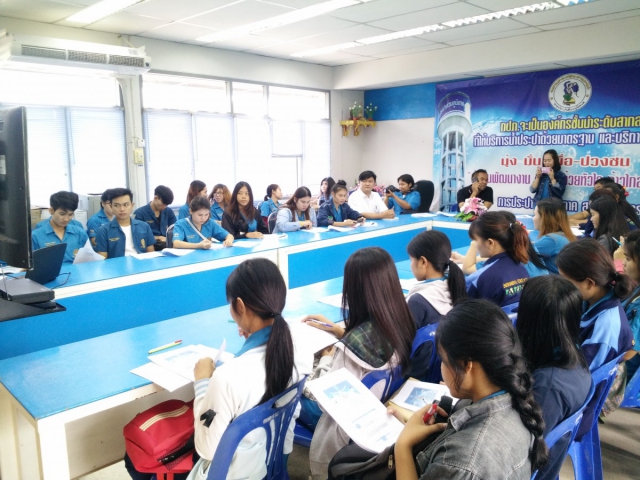 กปภ.สาขาสกลนคร นำโดย นายบุญส่ง ธิติกาญจน์พจนา ตำแหน่ง ผจก.กปภ.สาขาสกลนคร ,นายศิริชัย อุ่ยตระกูล ตำแหน่งหัวหน้างานผลิต และพนักงานในสังกัด ให้การต้อนรับ อาจารย์และนักศึกษาคณะวิทยาศาสตร์และเทคโนโลยี สาขาวิทยาศาสตร์สิ่งแวดล้อม มหาวิทยาลัยราชภัฏสกลนคร ชั้นปีที่ 3 จำนวนประมาณ 50 คน ในการเข้าศึกษาดูงาน ณ กปภ.สาขาสกลนคร เพื่อให้นักศึกษาได้เรียนรู้ระบบการผลิตน้ำประปา เพื่อการอุปโภคบริโภค ในวันที่ 1 พฤศจิกายน 2559 ซึ่งจากการเข้าศึกษาดูงานในครั้งนี้ คณะอาจารย์และนักศึกษาได้เรียนรู้และทราบขั้นตอนการผลิตน้ำประปาของ กปภ. และขั้นตอนการตรวจสอบคุณภาพน้ำ ว่ากว่าจะได้น้ำประปาที่ใสสะอาดและมีคุณภาพ ต้องผ่านขั้นตอนต่างๆ หลายขั้นตอนอย่างไรบ้าง