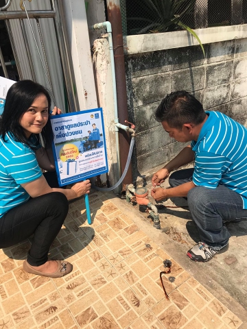 ในวันพฤหัสบดีที่ 20 กุมภาพันธ์ 2563 นำโดยนายวินัย สุขสุมิตร ผจก.กปภ.สาขาคลองหลวง พร้อมด้วยหัวหน้างานอำนวยการ หัวหน้างานบริการฯ และพนักงานประปาในสังกัด ร่วมกันลงพื้นที่ในหมู่บ้านราชธานี ต.คลองหนึ่ง อ.คลองหลวง จ.ปทุมธานี จัดกิจกรรมอาสาดูแลประปาเพื่อปวงชนและโครงการ "เติมใจให้กัน" ครั้งที่ 1/2563 โดยรณรงค์เกี่ยวกับการประหยัดน้ำ ดูแลระบบประปาภายนอกและภายในบ้าน ค้นหาและซ่อมแซมท่อแตกรั่ว และการชำระค่าน้ำประปาผ่าน Application Line ของการประปาส่วนภูมิภาค เพื่อความสะดวกและรวดเร็วในการชำระค่าน้ำประปาในแต่ละเดือน