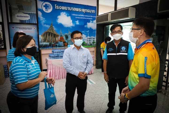 นายสราวุธ เอี่ยมสงคราม ผู้อำนวยการ กปภ.ข.2 พร้อมด้วย นางสาวลัดดา คุณเลิศกิจ ผู้ช่วยผู้อำนวยการ กปภ.ข.2 ร่วมกับ กปภ.สาขาในสังกัด ร่วมบริจาคน้ำดื่มบรรจุขวดตราสัญลักษณ์ กปภ. พร้อมเงินจำนวน 48,000 บาท ให้แก่โรงพยาบาลพระพุทธบาท เมื่อวันที่ 18 สิงหาคม 2564 เพื่อช่วยสนับสนุนการดูแลรักษาผู้ป่วยติดเชื่อโควิด 19 โดย การประปาส่วนภูมิภาคขอให้ประชาชนฏิบัติตามมาตรการป้องกัน โควิด 19 อย่างเคร่งครัด เพื่อความปลอดภัยของตัวเองและครอบครัว