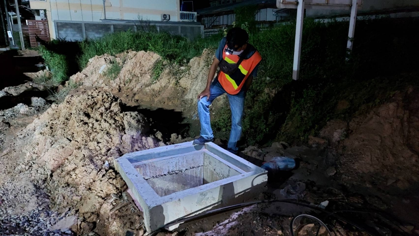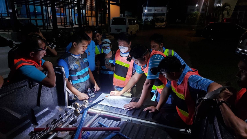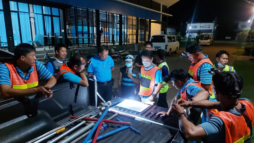 วันที่ 13 กันยายน 2565 เวลา 20.00 น. การประปาส่วนภูมิภาคสาขามหาสารคาม นำโดยนาย ณ.เณร วัฒนกูล ผู้จัดการ กปภ.สาขามหาสารคาม ได้มอบหมายให้นายดิลก กิตติภักดีกุล ผู้ช่วยผู้จัดการ กปภ.สาขามหาสารคาม และหัวหน้างานผลิต พร้อมด้วยพนักงานในสังกัด ลงพื้นที่ออกสำรวจค้นหาท่อแตก ท่อรั่ว ของระบบท่อจ่ายน้ำของโรงกรองน้ำห้วยคะคาง DMA2 และ DMA8 ในพื้นที่ ต.ตลาด อ.เมือง จ.มหาสารคาม เพื่อลดอัตราน้ำสูญเสีย เพิ่มปริมาณน้ำจำหน่าย รวมถึงเพิ่มประสิทธิภาพการจ่ายน้ำประปาเพื่อบริการแก่ลูกค้าในเขต อำเภอเมือง จังหวัดมหาสารคาม พร้อมแจ้งดำเนินการซ่อมแซมอย่างทันท่วงที โดยการปฏิบัติการในครั้งนี้เสร็จสิ้นเมื่อเวลา 24.00 น.
