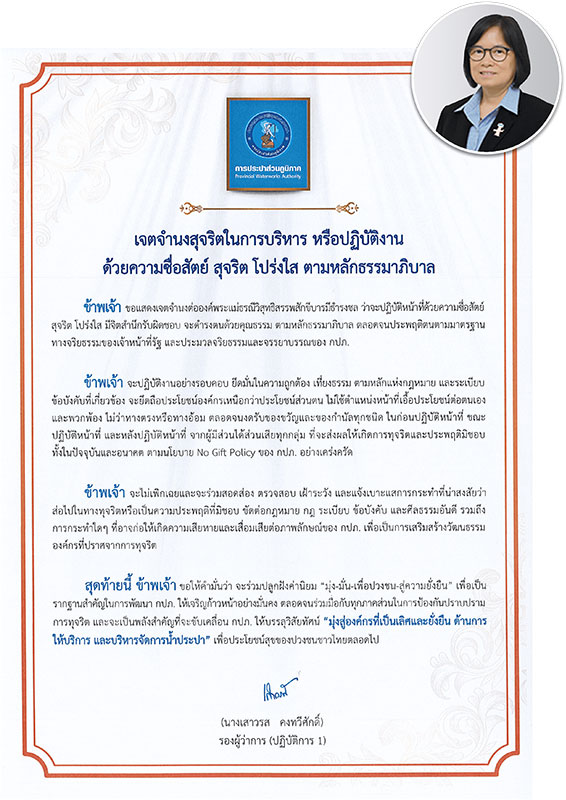ประกาศเจตจำนงการบริหารงาน รองผู้ว่าการ (ปฏิบัติการ 1)