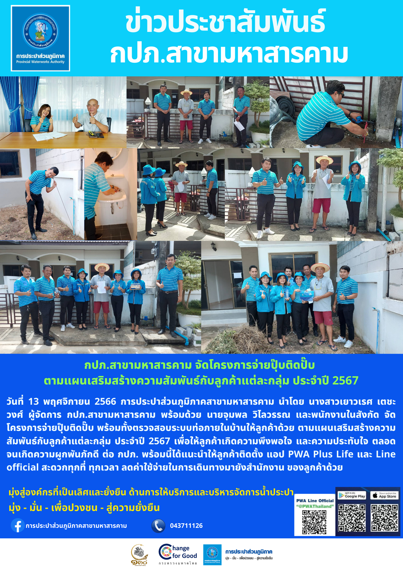 กปภ.สาขาอ้อมน้อย จัดกิจกรรมโครงการมุ่งมั่นเพื่อปวงชน เติมใจให้กัน ครั้งที่ 5/2567