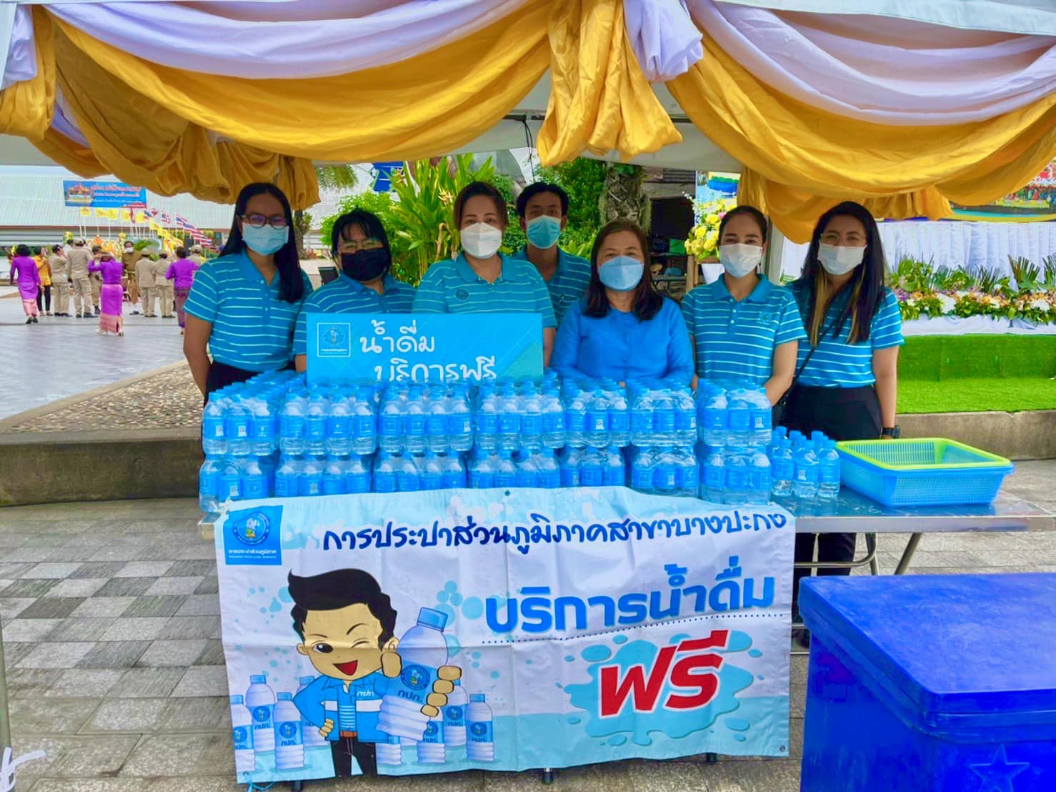 งานลูกค้าสัมพันธ์ กปภ.ข.8 ร่วมกับ กปภ.สาขาพิบูลมังสาหาร ให้บริการน้ำดื่มตรา กปภ. ในงานพิธีบวงสรวงเพื่อยกเสาเอกพระบรมธาตุศรีแสงธรรมมหาวชิระโมลี