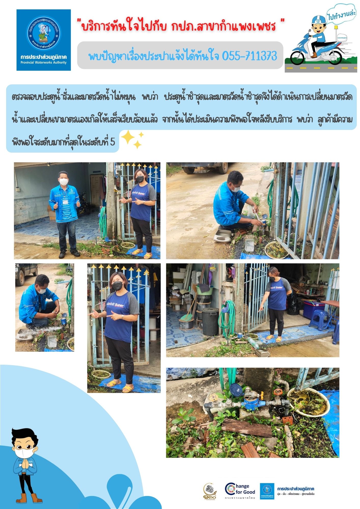 บริการทันใจ ใส่ใจลูกค้า กปภ.สาขากำแพงเพชร ส่ง Mr.ประปา ตรวจสอบน้ำไม่ไหล