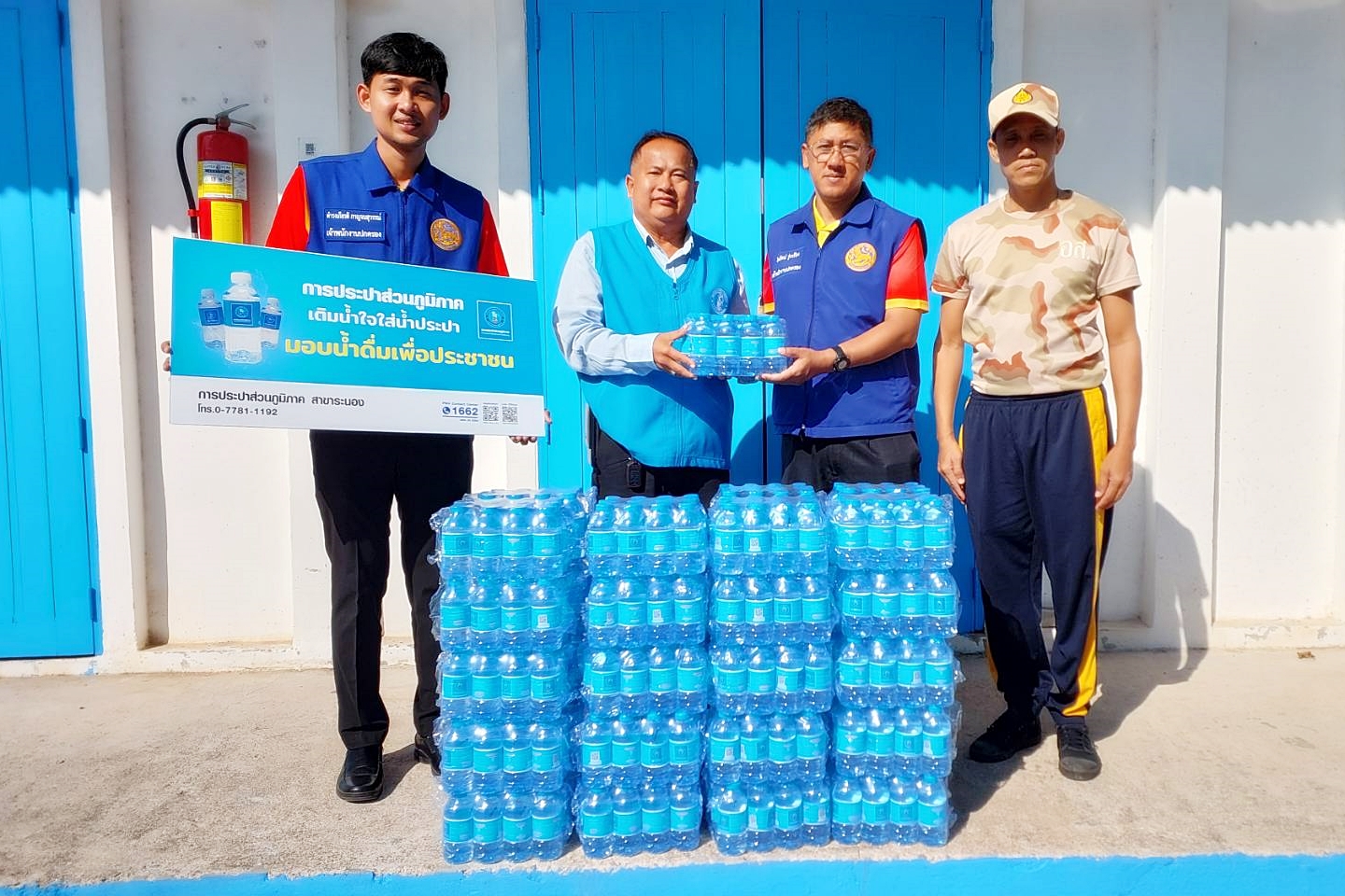 กปภ.สาขาสมุทรสาคร (พ) มอบน้ำดื่มบรรจุขวด จำนวน 600 ขวด แก่ที่ว่าการอำเภอกระทุ่มแบน