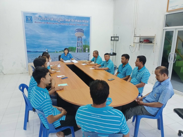 การประปาส่วนภูมิภาคสาขาคลองท่อม ภายใต้การบริหารงานโดย นางเพ็ญศรี ชตีพานี ผู้จัดการการประปาส่วนภูมิภาคสาขาคลองท่อม ได้จัดกิจกรรม Morning Talk ครั้งที่ 4/2566 ณ ห้องปฏิบัติการควบคุมคุณภาพน้ำ อาคารผลิตแม่ข่ายคลองท่อม เมื่อวันที่ 27 มกราคม 2566 เวลา 09.00 น. โดยผู้จัดการกล่าวถึงการดำเนินงานในด้านต่างๆให้ได้ตามเป้าหมายที่กำหนดไว้ พูดคุยเรื่องการบริการลูกค้าและข้อร้องเรียน การจัดกิจกรรมเชิญชวนลูกค้าลงทะเบียน Line ID @pwathailand ชำระค่าน้ำประปาออนไลน์ และได้มีการประชุมติดตามแผนการดำเนินงานศูนย์ราชการสะดวก (GECC) เน้นย้ำเรื่องมาตรฐานการให้บริการ การสร้างความพึงพอใจให้กับลูกค้า ให้เป็นไปตามเกณฑ์มาตรฐานที่กำหนด ประชุมคณะกรรมการดำเนินโครงการ WSP เพื่อติดตามการดำเนินโครงการให้เป็นไปตามแผนงานโครงการ WSP ประจำปี 2566 พร้อมทั้งร่วมพูดคุยแลกเปลี่ยนและรับฟังความคิดเห็นปัญหาต่างๆ ในการทำงาน เพื่อให้เป็นไปในทิศทางเดียวกันและเกิดประสิทธิภาพประสิทธิผลสูงสุดต่อ กปภ.สาขาคลองท่อมต่อไป