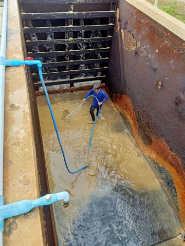 วันศุกร์ที่ 3 กุมภาพันธ์ 2566 การประปาส่วนภูมิภาคสาขาบางสะพาน นำโดยนายสุชาติ สุดเสนาะ ผจก. กปภ.สาขาบางสะพาน มอบหมายให้ นายทิวา พงษ์ลิ้ม หัวหน้างาน 8 งานผลิต พร้อมด้วยพนักงานในสังกัด ร่วมกันทำความสะอาดล้างถังตกตะกอนโรงกรองน้ำขนาด 50 ลบ.ม./ชม. และโมบายแพลนขนาด 100 ลบ.ม./ชม. สถานีผลิตจ่ายน้ำร่อนทองตามโครงการจัดการน้ำสะอาด (WSP) ประจำเดือนกุมภาพันธ์ 2566 เพื่อสร้างความมั่นใจให้ประชาชนผู้ใช้น้ำได้อุปโภคบริโภคน้ำประปาที่สะอาดได้มาตรฐาน