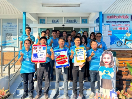 จากนั้นได้ร่วมถ่ายภาพ พร้อมมอบหัวใจสีฟ้าให้กับลูกค้า เพื่อเป็นการสร้างความสัมพันธ์ที่ดีระหว่างลูกค้า กับ กปภ.