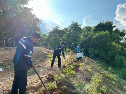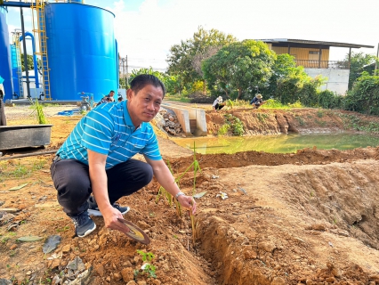 พร้อมด้วย หัวหน้างาน และพนักงาน ในสังกัด ดำเนินการปลูกหญ้าแฝก บริเวณ คันดินตามแนวทางพระราชดำริ เพื่อป้องกัน