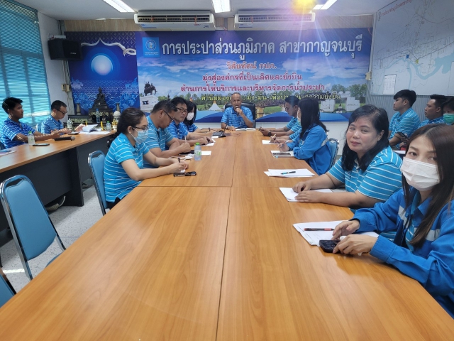 วันอังคารที่ 7 พฤศจิกายน 2566 กปภ.สาขากาญจนบุรี นำโดย นายพิชัย พันธุ์อร่าม ผจก.กปภ.สาขากาญจนบุรี พร้อมด้วยพนักงานในสังกัด ร่วมดำเนินกิจกรรมสนทนายามเช้า (Morning Talk) ครั้งที่ 2/2567 ประจำเดือน พฤศจิกายน โดยติดตามผลการดำเนินงาน ปี 2566, ติดตามการจัดทำถังขยะเปียก,ซักซ้อมการอธิบายนวัตกรรมแจ้งเตือนน้ำรั่วภายในบ้านมีประโยชน์อะไรบ้าง, การเตรียมความพร้อมในการยื่นขอรับรองมาตรฐานศูนย์ราชการสะดวก (GECC) ประจำปี 2567 , ซักซ้อมการเบิกจ่ายเงินให้เป็นแนวทางเดียวกัน, และร่วมกันหาแนวทางแก้ไขปัญหาน้ำขุ่นบางพื้นที่ เพื่อลดข้อร้องเรียน