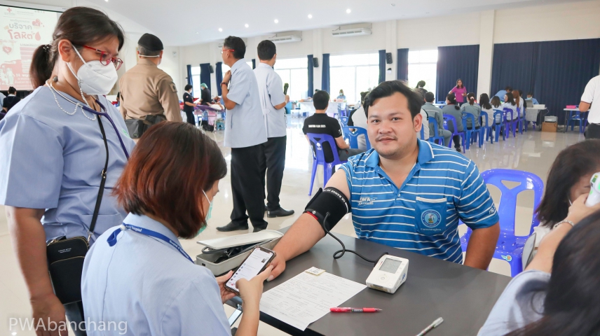 การประปาส่วนภูมิภาคสาขาบ้านฉาง ร่วมบริจาคโลหิต แก่สภากาชาดไทย : กปภ.สาขาบ้านฉาง โดยนายสายชล มัติโก หัวหน้างานผลิต นำบุคลากรในสาขา เข้าร่วมบริจาคโลหิต แก่สภากาชาดไทย ณ หอประชุมที่ว่าการอำเภอบ้านฉาง จังหวัดระยอง เมื่อวันที่ 14 พฤศจิกายน 2566 โอกาสนี้ กปภ.บ้านฉาง ได้สนับสนุนน้ำดื่มบรรจุขวด ตรา กปภ. เพื่อบริการประชาชน และเจ้าหน้าที่ในการรับบริจาคโลหิตด้วย...