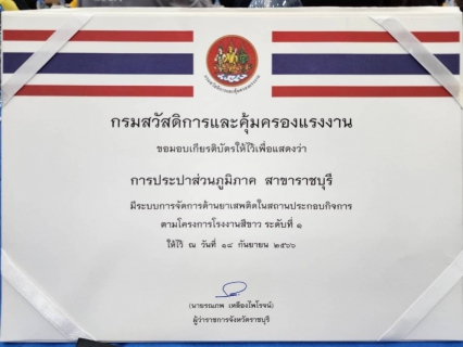 🔹เข้ารับรางวัลสถานประกอบกิจการ ที่มีระบบการจัดการด้านยาเสพติดในสถานประกอบกิจการ ตามโครงการโรงงานสีขาว ประจำปี ๒๕๖๖ โดยมีนายเกียรติศักดิ์ ตรงศิริ ผู้ว่าราชการจังหวัดราชบุรี เป็นประธานมอบรางวัลให้แก่สถานประกอบกิจการทีได้รับรางวัล จัดขึ้นโดยสำนักงานสวัสดิการและคุ้มครองแรงงานจังหวัดราชบุรี ณ ที่ห้องประชุม ๑ ชั้น ๔ เทศบาลตำบลหลักเมืองเลขที่ ๓๕๙ หมู่ที่ ๓ ตำบลโคกหม้อ อำเภอเมืองราชุบรี จังหวัดราชบุรี