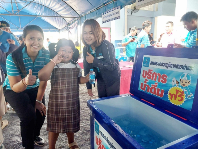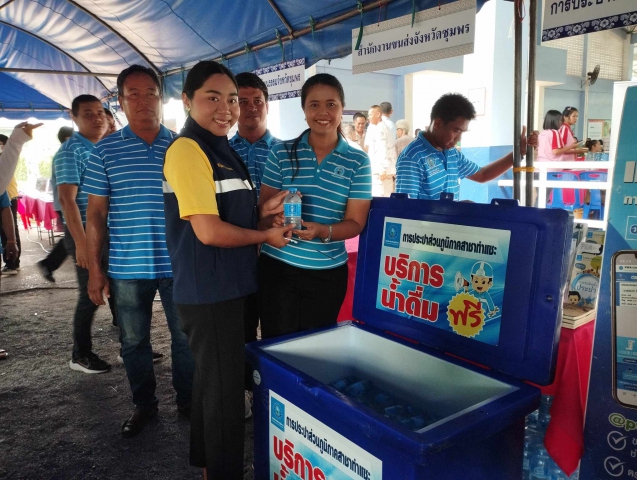 วันพุธที่ ๒๔ เมษายน ๒๕๖๗ นายอนุเทพ แดงบุญ ผู้จัดการการประปาส่วนภูมิภาคสาขาท่าแซะ พร้อมด้วยหัวหน้างาน พนักงานและเจ้าหน้าที่ในสังกัด ร่วมสนับสนุนน้ำดื่มบรรจุขวดตราสัญญลักษณ์กปภ. จำนวน ๕๐๐ ขวด เพื่อให้บริการแก่หน่วยงานราชการ รัฐวิสาหกิจ องค์กรภาครัฐและเอกชน ภาคประชาชน นักเรียนนักศึกษา และผู้ที่เข้าร่วมกิจกรรม พร้อมทั้งให้ความรู้คำแนะนำเกี่ยวกับระบบประปา ทั้งนี้เป็นการพบปะเยี่ยนเยียน รับฟังและรับทราบปัญหาของประชาชนในพื้นที่ เป็นการสร้างความสัมพันธ์อันดีระหว่างหน่วยงานกับประชาชน โดยมี นายวิสาห์ พูลศิริรัตน์ ผู้ว่าราชการจังหวัดชุมพร เป็นประธานเปิดโครงการจังหวัดพบประชาชนจังหวัดชุมพร "หน่วยบำบัดทุกข์ บำรุงสุข สร้างรอยยิ้มให้ประชาชน" ประจำปี ๒๕๖๗ ณ โรงเรียนชุมชนมาบอำมฤต หมู่ที่ ๑๒ ตำบลดอนยาง อำเภอปะทิว จังหวัดชุมพร โดยมีหัวหน้าส่วนราชหาร ข้าราชการ ผู้พิพากษาหัวหน้าศาล ทหาร ตำรวจ สาธารณสุข สมาชิกเหล่ากาชาดจังหวัดชุมพร แม่บ้านมหาดไทย ผู้บริหารองค์กรปกครองส่วนท้องถิ่น กำนัน ผู้ใหญ่บ้าน คณะครู นักเรียน เจ้าหน้าที่ และพี่น้องประชาชนในพื้นที่ เข้าร่วมกิจกรรมโครงการ ซึ่งมีบริการต่างๆ อาทิ บริการด้านการแพทย์ตรวจรักษาโรคเบื้องต้น ทั้งแพทย์แผนปัจจุบัน และแพทย์แผนไทย ตรวจวัดสายตาพร้อมแจกแว่นสายตาฟรี บริการทำบัตรประชาชน นอกสถานที่ บริการให้คำปรึกษา รับร้องเรียนร้องทุกข์ ตลาดนัดแก้หนี้ แจกพันธุ์พืชผัก มอบถุงยังชีพให้แก่ผู้สูงอายุ มอบทุนการศึกษา และมอบจักรยาน ให้แก่นักเรียน เป็นต้น
