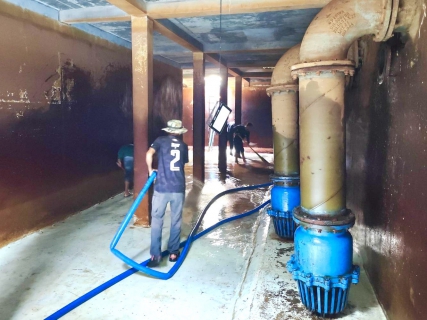 ในวันพฤหัสบดีที่ 27 มิถุนายน 2567 กปภ.สาขาขลุง โดย นายจาตุรณต์ คูสว่างศรี ผจก.กปภ.สาขาขลุง มอบหมายให้ นายกะเสษฐ ชอบชูผล หัวหน้างานผลิต พร้อมด้วยพนักงานและลูกจ้างในสังกัด ดำเนินการล้างถังตกตะกอนภายใต้โครงการจัดการน้ำสะอาด (Water Safety Plan : WSP) ประจำเดือนมิถุนายน 2567 โดยร่วมกันล้างถังตกตะกอน ขนาด 500 มม. ณ สถานีผลิตจ่ายน้ำพลิ้ว-แหลมสิงห์ เพื่อสร้างความมั่นใจให้กับประชาชนในการอุปโภคบริโภคน้ำประปา และมั่นใจได้ว่ามีกระบวนการผลิตน้ำประปาที่ดี ทำให้ได้น้ำประปาที่มีคุณภาพ เป็นไปตามมาตรฐานตามที่ กปภ.กำหนด